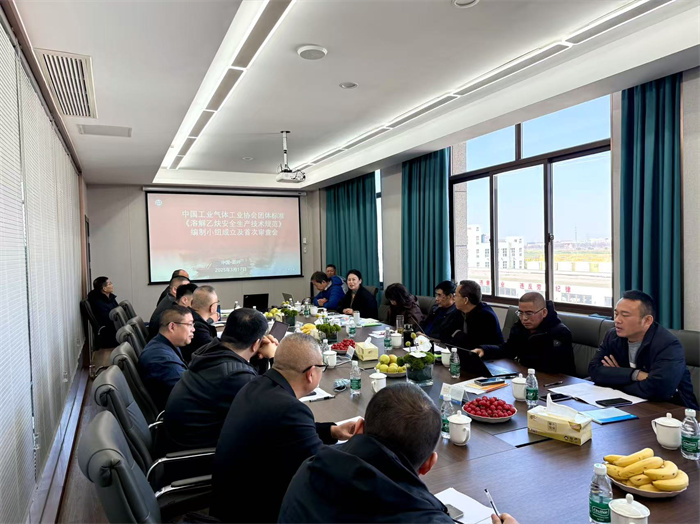 根据中国工业气体工业协会及其团体标准技术委员会 2025 年度工作计划与安排,由焊割气专委会提出并负责编制起草的《乙炔气生产安全技术规范》团体标准,于 2025 年 3 月17~18 日在浙江省嘉兴市召开了编制小组成立及首次工作会议,共有 23 位代表到会。会议特邀中国工业气体工业协会科技部孙晓燕部长到会指导。本次会议由浙江海宏气体股份有限公司协办。会议在浙江海宏气体股份有限公司会议室进行。会上,专委会主任委员张明均先生宣布会议开始,并对本次团标起草编制工作会议的必要性和重要性进行了分析,也对标准前期编制工作的大致情况做了介绍,对本次会议及其会后的标准编制工作提出了要求。张明均主任指出,参加本次团标编制小组的单位,都是国内本行业各地的龙头企业,使用的都是符合规范的、安全性能较好的设备,安全生产管理工作成绩都非常突出,为能编制出与国家法律法规、政策以及其他相关标准协调一致;确保标准中的技术内容准确、合理、先进,能反映当前行业的最佳水平;充分考虑实际应用情况需求,使标准具有可操作性和实用性,便于实施等奠定了基础。当然,在本规范的编制过程中,也要考虑到不同地区的差异以及技术等的发展与变化,编制的标准应具有一定的灵活性和适应性等。更重要的一点是,希望通过此次团体标准的编制工作,能成为全体参与人员的一次学习和进步的过程,并由此带出一批具有专业素养水平、有责任担当的行业年轻领头人。中国工业气体协会科技部孙晓燕部长也在会上做了重要讲话,她指出,我们编制的是行业生产安全技术规范,应以事故防范为导向,范围应全面,还应有相关内容的证实方法、异常工况处置等内容;文字应规范,技术要求不得低于国家标准;在满足行业发展需求的前提下,希望能按要求出色完成本次编制任务等。专委会朱贤富秘书长提出,此次编制的团体标准一定要鼓励先进、安全为先、摈弃落后;全体编制人员应加强横向协作配合,分工不分家;要遵守工作纪律,草案等文件不得外传;此次团标编制工作是一次非常好的学习机会,年轻人要发挥出生力军的作用,踏实开展工作,争取早日完成编制工作。